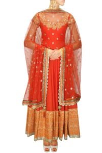 Red floral embroidered anarkali with attached dupatta