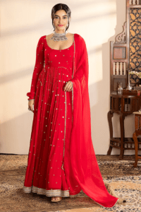 Red embroidered Anarkali