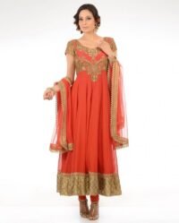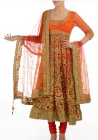 Tiered Orange Kalidar Suit with Embroidered Yoke