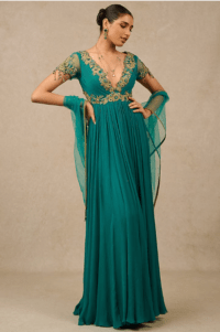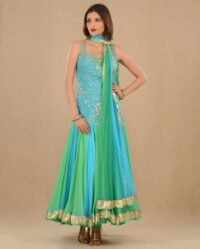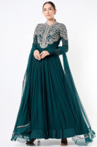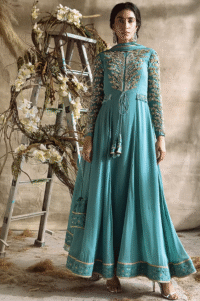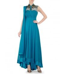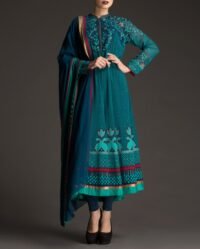 Teal Blue Anarkali Suit with Embroidery Pattern