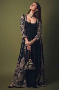Tara Sutaria In A Black Silk Anarkali With Mirror And Salma Embroidered Jacket