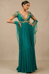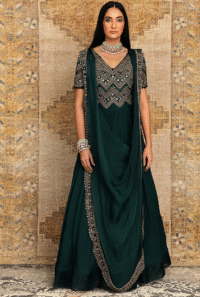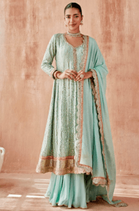 Teal Silk Chiffon Gara Embroidered Anarkali Set