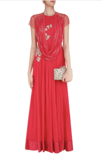 Valentino Pink Floral Embroidered Drape Anarkali Set
