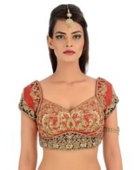 Royal Red Mirror Work And Zardozi Hand Embroidered Blouse