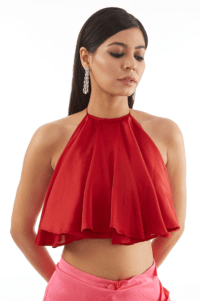 Red Satin Ruffled Top