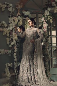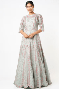 Grey Metallic Brocade Printed & Embellished Gown Saree