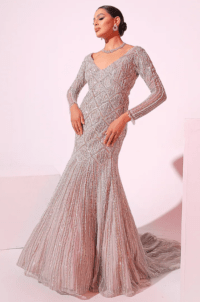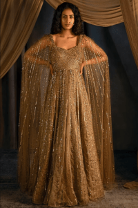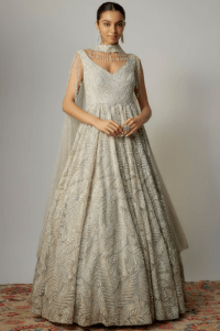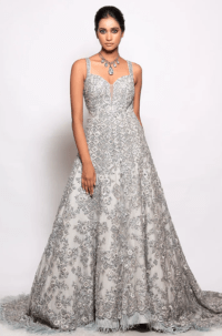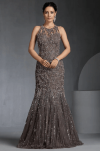 Grey Metallic Foil Chiffon Embellished Gown Saree