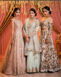 Beige Color Gown ,Mint Green Lehenga ,Off White Lehenga
