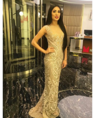 Beige color embroidered gown