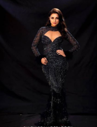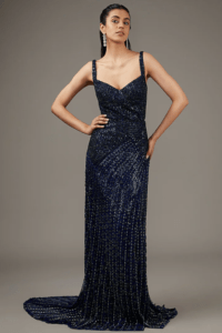 Pacific Blue Tulle Crystal & Sequins Embroidered Sculpted Gown