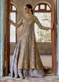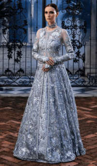 Pakistani Wedding Dress in Open Gown and Lehenga Style