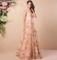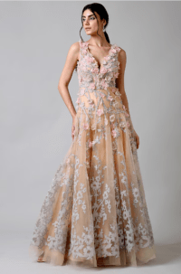 Beige Pink Embroidered Gown