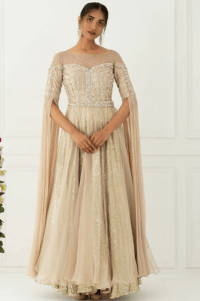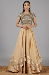 Beige Tulle Floral Motif & Bead Work Layered Gown