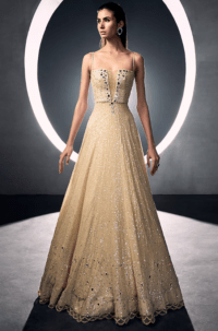 Beige Toned Net Gown With Zardosi Work