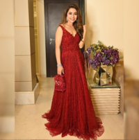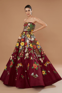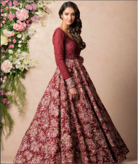 Wine color embroidered gown