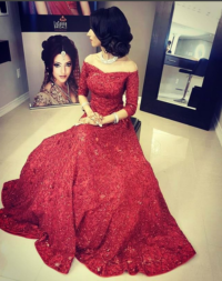 Wine Color Off Shoulder Gown