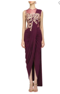 WINE EMBROIDERED PLEATED DRAPE SAREE GOWN