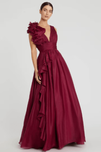 Wine embroidered draped gown