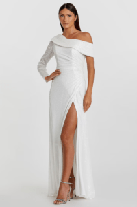White Polyester One-Shoulder Mermaid Gown