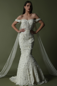 White Tulle & Hard Net Hand Embroidered Mermaid Gown