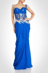 Blue Georgette Saree Gown With Swarovski Work