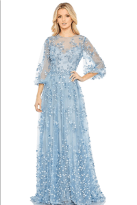 Blue Mesh Embroidered A-Line Gown