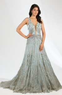 Blue Italian Tulle Crystal Hand Embroidered Gown