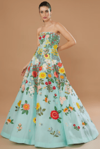Blue Organza Embroidered Gown