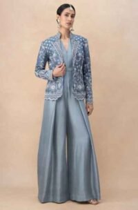 Grey zardosi embellished jacket set