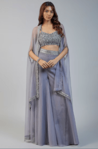 Grey Organza Crystal Cape Set