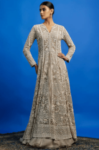 Grey Organza Resham Embroidered Jacket Set