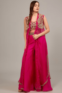 Hot Pink Organza 3D Embroidered Jacket Set