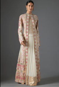 Ivory Chanderi Printed & Embroidered Long Jacket