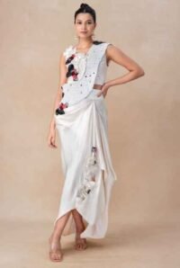 Ivory Organza & Pure Crepe 3D Floral Embellished Jacket Set