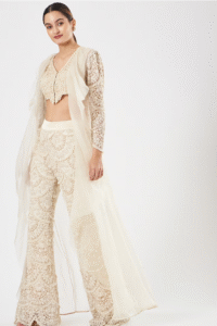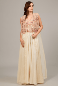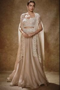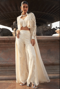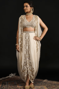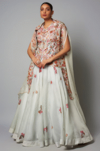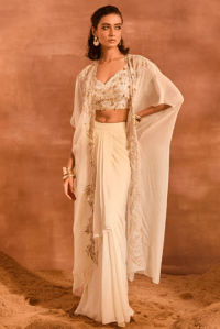 Ivory Organza Hand & Machine Embroidered Cape Set
