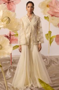 Ivory Organza & Net Pearl Embellished Jacket Set