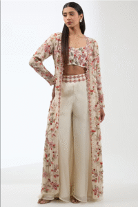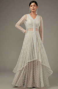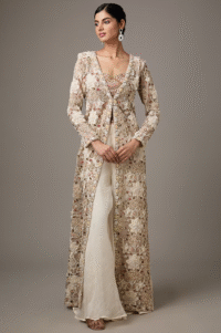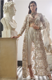 Ivory Net Hand Embroidered High-Low Jacket Set