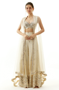 Ivory Organza Mirror Hand Embroidered Cape Set