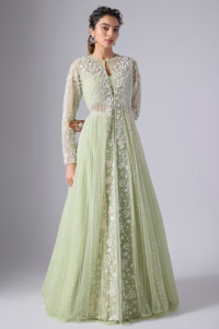 Mint Green Taiwan Net Floral Embroidered Gathered Kali Jacket Set