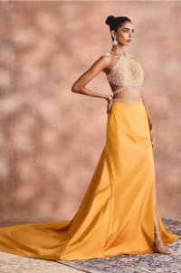 Mint Green Shimmer Chiffon Crystal Embroidered Cowl Skirt Set