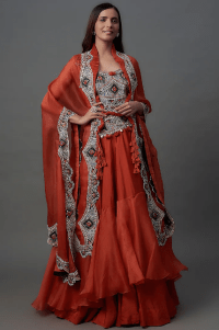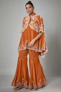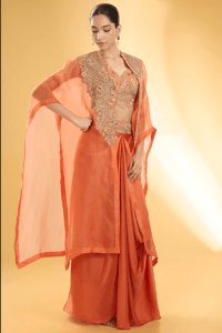 Saffron Orange Organza Hand & Machine Embroidered Cape Set