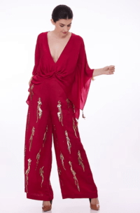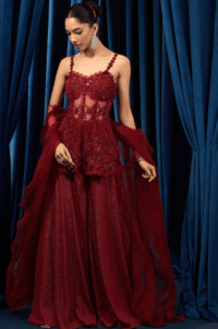 Ruby Red Net & Metallic Georgette Palazzo Set