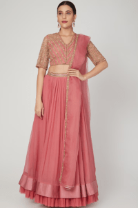 Ruby Pink Stretch Net Diamante Hand Embroidered Skirt