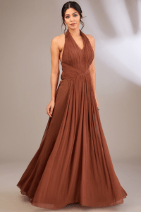 Rust Crinkle Chiffon Crinkle Embroidered Dress