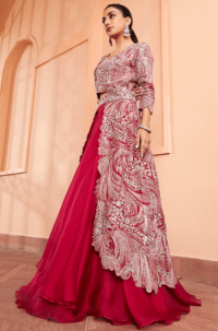 Ruby Organza Zardosi & Thread Embroidered Jacket Set