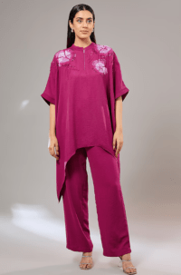 Ruby Textured Crepe Floral Hand & Machine Embellished Co-Ord Set