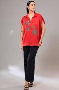 Ruby Textured Crepe Floral Hand & Machine Embellished Shirt