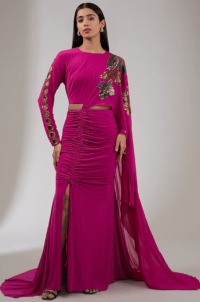 Ruby Pink Blended Lycra Draped Skirt And Top