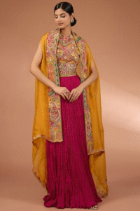 Yellow Organza Hand & Machine Embroidered Cape Set