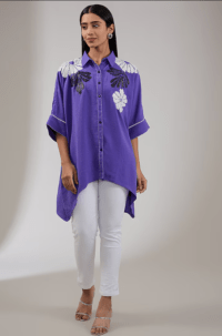 Amethyst Purple Textured Crepe Floral Embellished Tunic